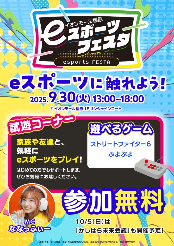 2025年9月30日(火)、イオンモール橿原にて開催された第7回「eスポーツフェスタ」において、