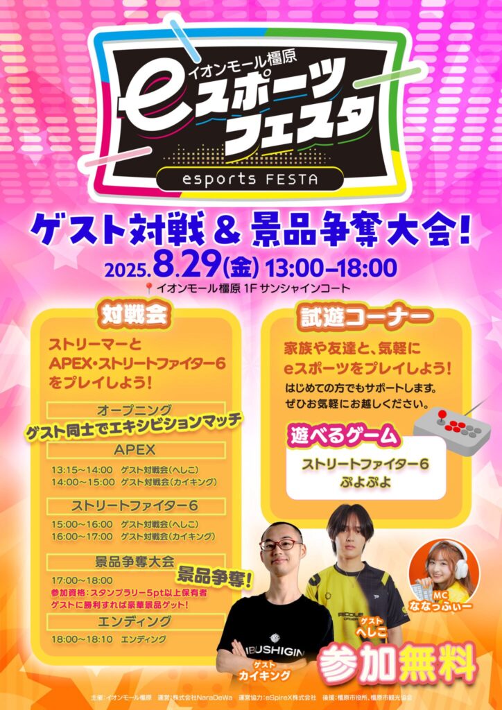2025年9月30日(火)、イオンモール橿原にて開催された第7回「eスポーツフェスタ」において、eSpireX株式会社はイベントの企画・制作・運営、MCキャスティング、当日進行管理を担当しました。 📍 開催情報 🎮 今回 …